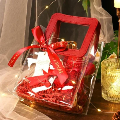 • Transparent Design: Clear PVC allows easy visibility of contents without opening the bag, making gift presentation neat and attractive.