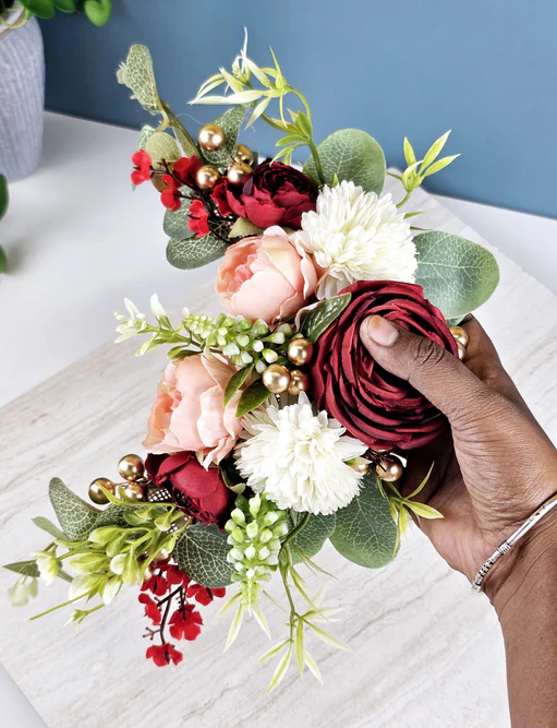 Add a vibrant and elegant touch to your décor and styling with these artificial flower stylish brooches. Beautifully crafted with ethnic detailing and floral embellishments, these ready-to-use flower bunches are perfect for multiple occasions and decorative purposes.