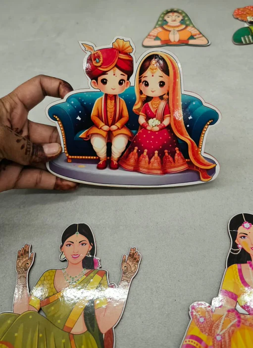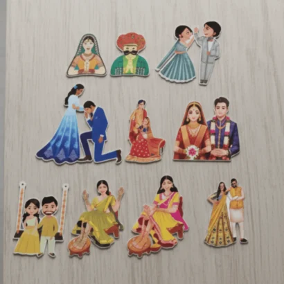 Add a beautiful designer touch to your trousseau packing and wedding gifting with this elegant collection of MDF marriage cutouts. Perfectly crafted to enhance the presentation of hampers and ceremonial trays, these cutouts bring charm and tradition to every celebration.